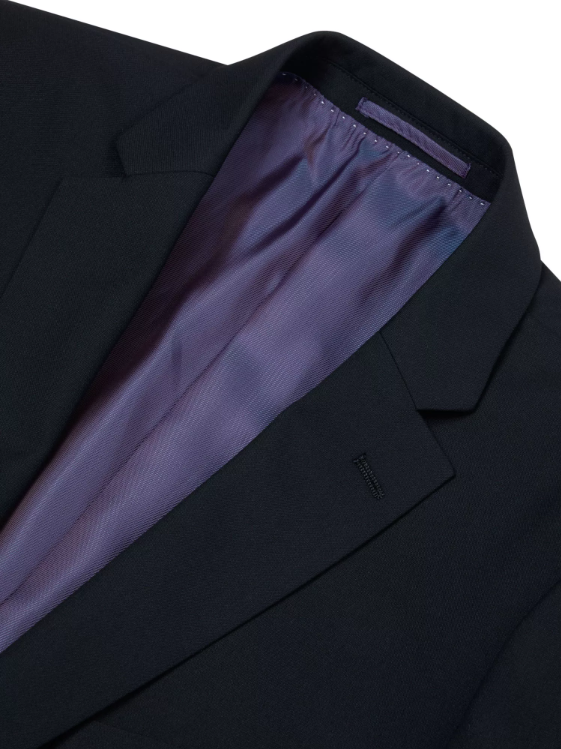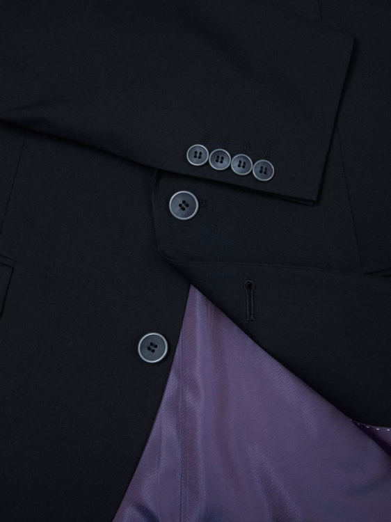The timeless plain black finish makes this jacket a versatile essential — equally suited to business, evening wear, or formal events. Classic details such as the two-button single-breasted front, slant flap pockets, and side vents complete this polished design.